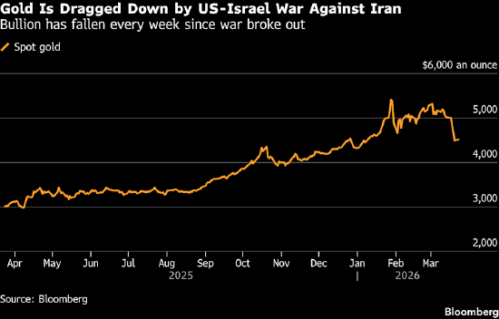 中东战事加剧通胀风险、推升加息预期,黄金连续第九日下跌,抹去年内全部涨幅。